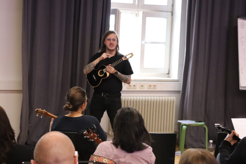 In diesem Workshop zeigt Carina, wie man mit percussiven Techniken mehr Rhythmus und Dynamik in die Ukulele-Begleitung bringt – vom einfachen „Chuk“ bis zu fortgeschrittenen Grooves. Dabei geht es nicht nur ums Nachspielen, sondern auch ums Verstehen: Wie sind diese Rhythmen aufgebaut, wie fühlen sie sich an – und wie passen sie zum Song? Gemeinsam wird geübt, ausprobiert und natürlich auch musiziert.